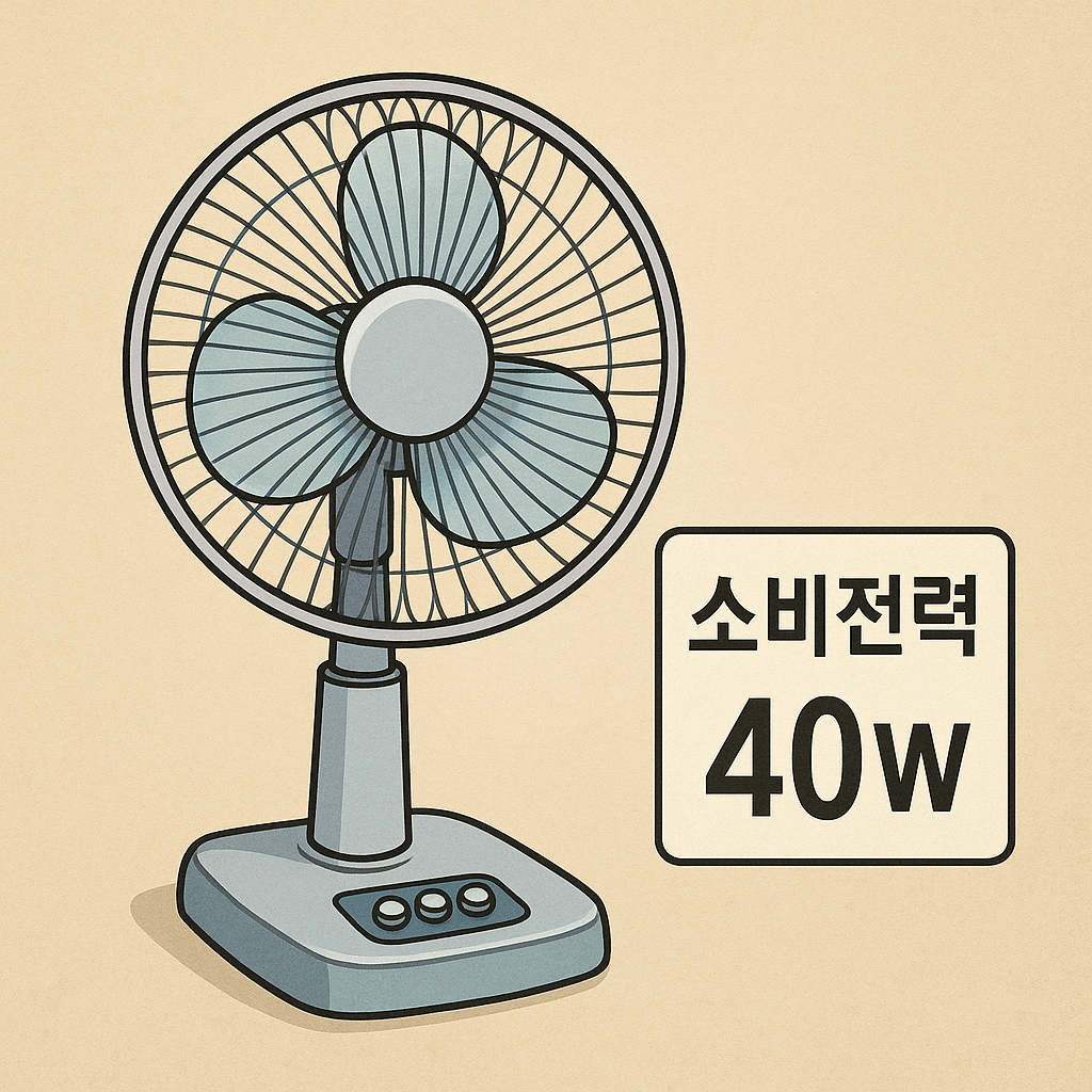| 일반 AC 선풍기 | 50~70W | 약 2,500원 ~ 3,500원 |