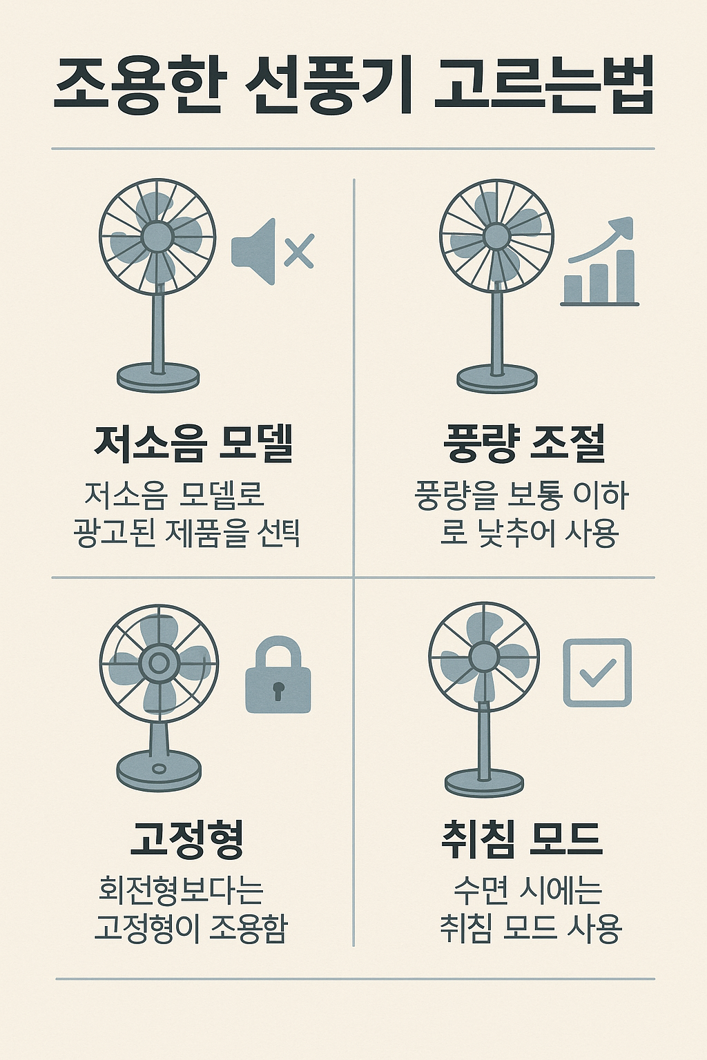 여름철 무더위를 날려주는 필수 아이템 ‘선풍기’. 하지만 하루 종일 틀어두는 만큼, 소음은 매우 중요한 선택 기준이 됩니다. 특히 수면 중 사용하거나, 공부방·사무실 등 조용한 환경에서 사용해야 할 경우, 선풍기 소음은 집중력과 휴식에 직접적인 영향을 미칩니다.
