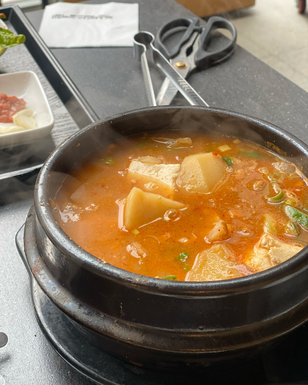 푹 익은 감자, 두부, 양파가 많이 들어가 있어서 양 걱정은 없었어요.